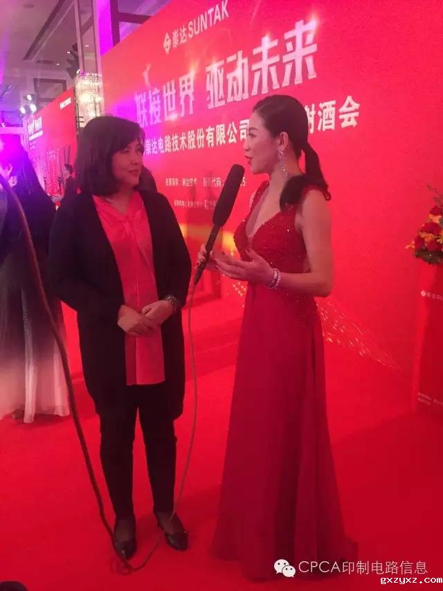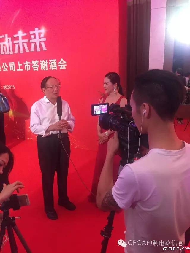 CPCA由理事长在酒会开场致辞中表示:这两天行业的焦点集中在崇达公司身上,昨天崇达技术成功上市,敲响了资本市场的钟声!崇达的成功上市得益于崇达有位有性格的董事长姜雪飞,在姜总身上能看到坚韧的性格和对事物一丝不苟的追求!在上次行业峰会上,他提到现在的企业有的在"活着",有的在"活好",有的在"超越",今天崇达技术通过上市已经完成了"活着"和"活好",未来崇达公司借助资本力量后还将完成"超越"!对于我们所有制造企业来说,也要做出一个有个性有特色的企业!